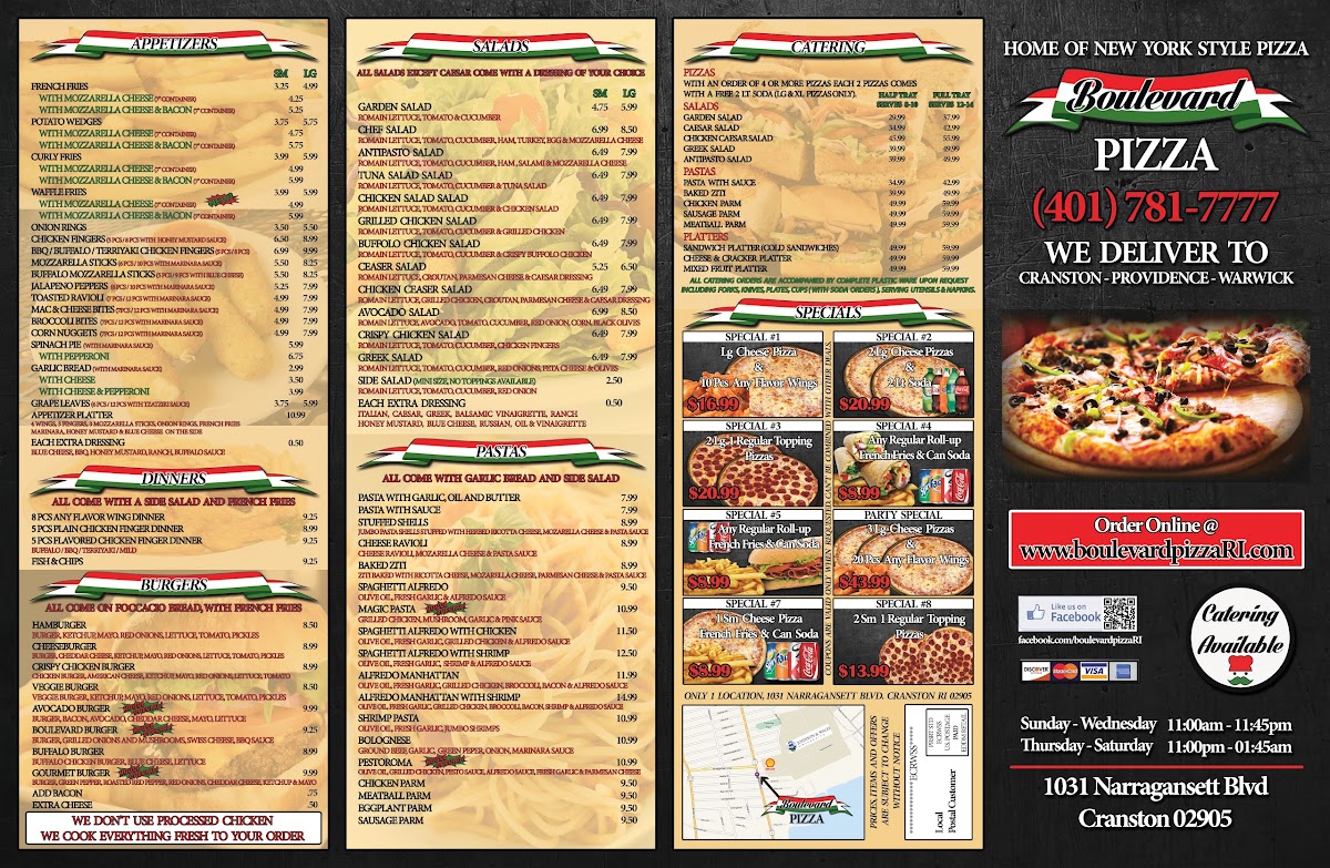 Creamy Alfredo sauce with chicken and spinach. Choice of Ziti, Linguini, or Fettuccini pasta.